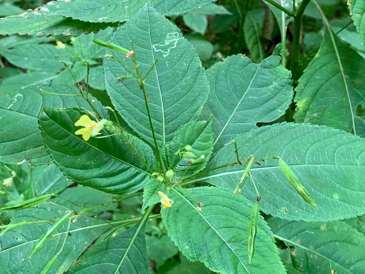 Vi mødtes i Hamborgskoven og lige ved skovleddet fandt vi en stor bevoksning af Springbalsamin, som jo altid gemmer på en overraskelse, man udvælger de største frøkapsler og tager omkring dem og bliver ganske overrasket, når kapslen på grund af berøring, udslynger sine frø med stor kraft inde i hånden.